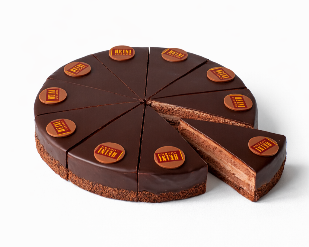 Beschreibung: Äusserst schokoladig! Feinstes Schokoladenbiscuit vereint mit einer zarten Schokoladenbuttercrème. Das ganze wird umhüllt mit einer knackigen und dunklen Schokoladendecke.