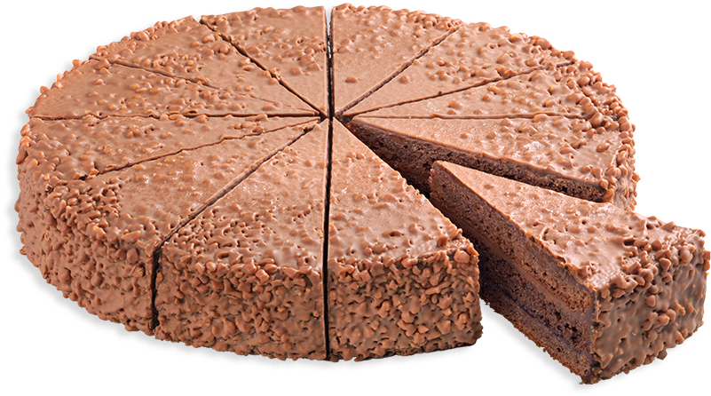 Beschreibung: Äusserst schokoladig! Feinstes Schokoladenbiscuit vereint mit einer zarten Schokoladenbuttercrème. Das ganze wird umhüllt mit einer knackigen und dunklen Schokoladendecke.